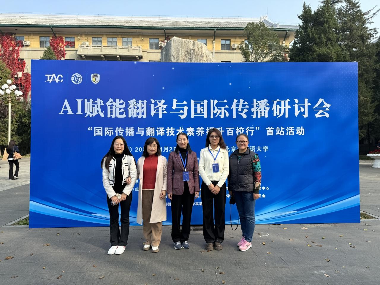 近日,我院组织教师参加了由中国翻译协会、中国外文局翻译院指导,北京外国语大学主办的AI赋能翻译与国际传播研讨会,暨“国际传播与翻译技术素养提升百校行”首站活动。本次活动旨在探讨人工智能技术在翻译和国际传播领域的应用与发展趋势。此次研讨会汇聚了来自高校、研究机构和企业的专家学者,共同分享了最新的研究成果和实践经验。