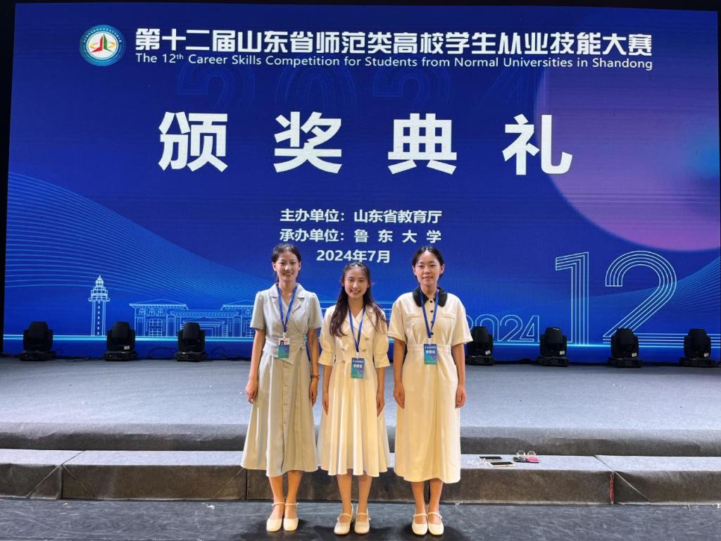 7月17日至21日,第十二届山东省师范类高校学生从业技能大赛省级决赛在鲁东大学举办,精品国产一区二区四名学生参加了决赛,并在激烈的角逐中斩获一等奖一项、二等奖一项、三等奖一项的好成绩。其中,龙娜娜老师指导的小学英语抽取组选手马舒心同学获得一等奖第一名,龙老师指导的小学英语推荐组选手郝凯同学获得二等奖,范丽丽老师指导的高中英语推荐组选手厚祥媛同学获得三等奖。龙娜娜老师被评为“优秀辅导老师”。