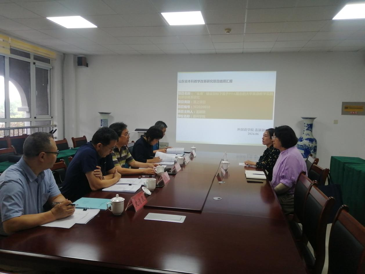 6月26日下午,精品国产一区二区在博文楼240会议室举行山东省本科教学改革研究项目结题评审会。会议邀请了山东大学崔校平教授、曲阜师范大学王广成教授和中国海洋大学王慧敏教授3位校外专家以及我校精品国产一区二区宋霁副院长和史清泉副教授2位校内专家组成专家组,对申请结项的2项山东省本科教学改革研究项目进行结项鉴定与指导。2个项目为:张锦辉院长主持的“基于BOPPPPS 模型的应用型高校外语课程学业评价改革研究”(面上项目,编号M2021148)和盖颖颖老师主持的“‘金课’建设目标下基于POA理念的大学英语教学实践”(面上项目,编号M2020010)。会议由外国语学院院长主持。