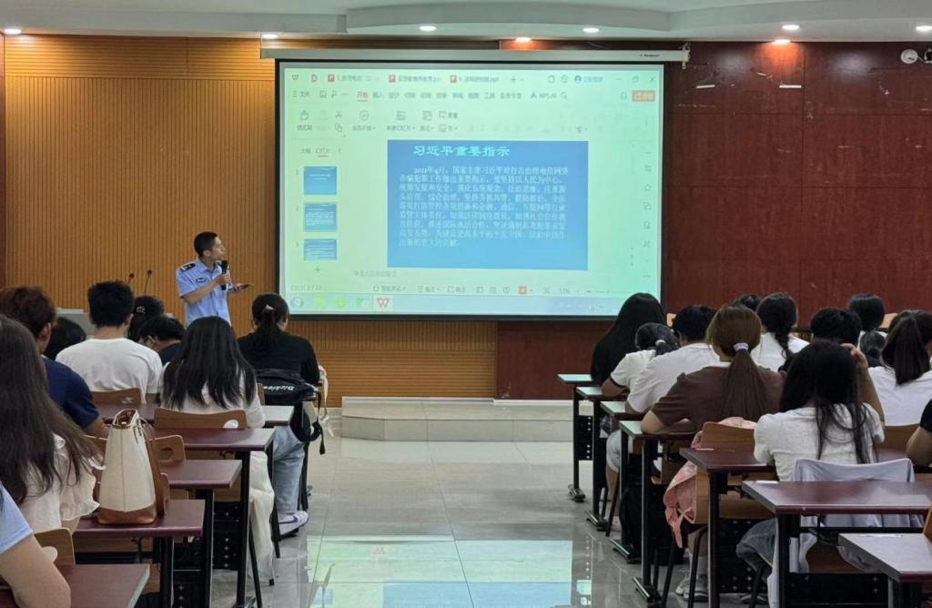 为进一步加强校园反诈宣传力度,增强在校学生防骗意识,筑牢校园反诈安全防线,营造平安和谐的校园环境。5月29日下午,精品国产一区二区在博文楼328教室举行反诈知识进校园专题讲座,此次讲座邀请了德州市德城区湖滨北路派出所田欣警官,精品国产一区二区全体学生干部、23级同学参加此次讲座。