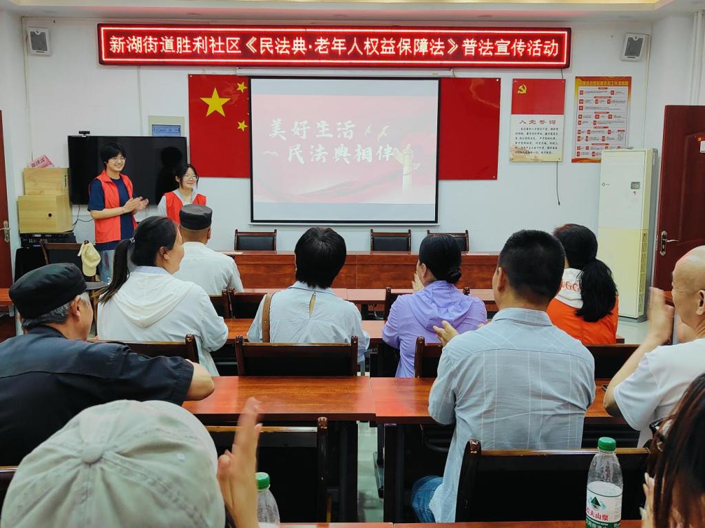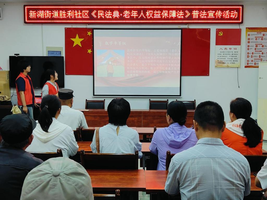 为深入学习贯彻习近平法治思想,进一步营造良好的法治氛围,传递社会正能量,提升社区老年人的法治意识,让民法典真正走到群众身边、走进群众心里,精品国产一区二区青年志愿服务队于5月28日在新湖街道胜利社区开展“美好生活,民法典相伴”主题志愿服务活动。