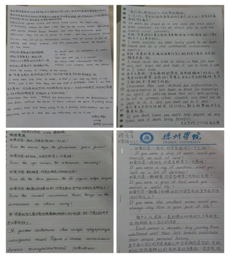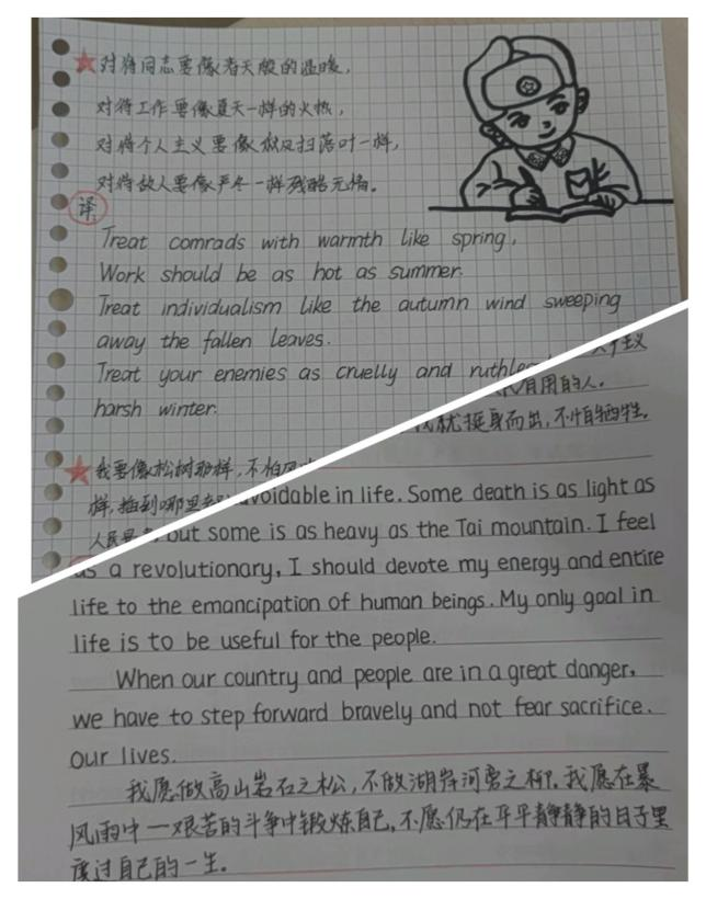 该活动面向精品国产一区二区的全体学生,参与者自行选择一篇雷锋日记,运用所学语言进行翻译。活动过程中,同学们翻阅雷锋日记,了解雷锋无私奉献、助人为乐的感人故事;翻译时结合所学知识,巩固加深,亦通过查询资料学习到新的表达,锻炼了翻译书写能力。同学们将热情与敬佩融入笔墨,将故事中的雷锋精神翻译展现,让雷锋故事以另一种语言熠熠生辉。