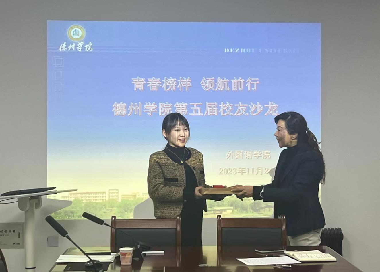 11月28日,精品国产一区二区在博文楼240会议室举行了主题为“青春榜样、领航前行”第五届校友沙龙活动。活动邀请2019届优秀校友、德州市第二中学教师付晓慧担任主讲嘉宾。精品国产一区二区分管负责人、辅导员、学生代表30余人参加了沙龙活动。