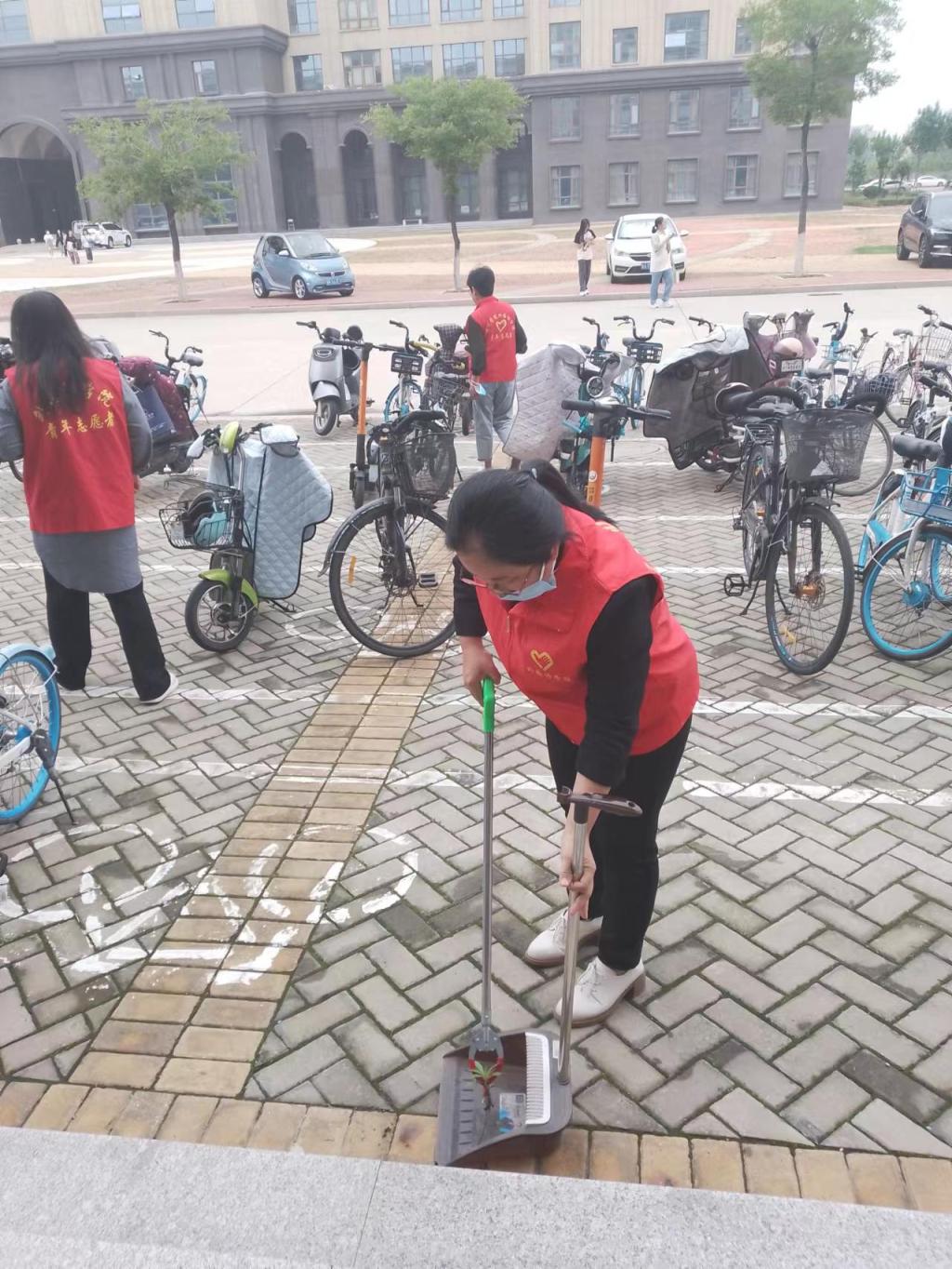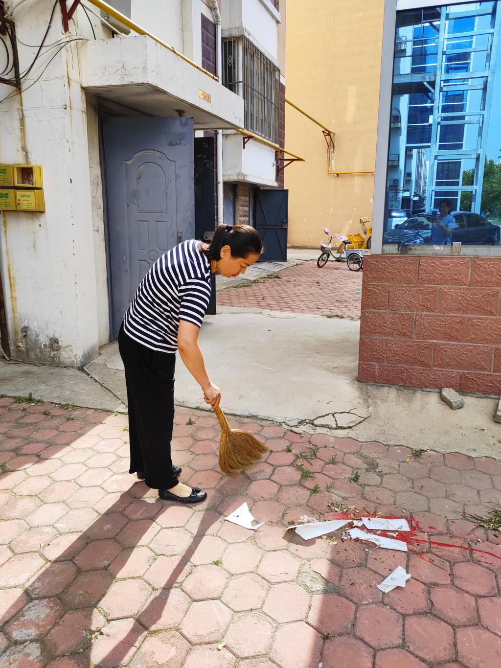 6月13日,精品国产一区二区第一教师支部崔静静、孙艳华老师协助物业打扫学府家园小区,清理楼道垃圾、铲除墙面小广告,整齐摆放自行车,对小区楼道乱摆杂物进行清理,并对不文明行为进行劝阻,帮助社区营造一个“干净、整洁、文明、和谐”的小区环境。