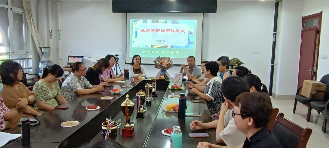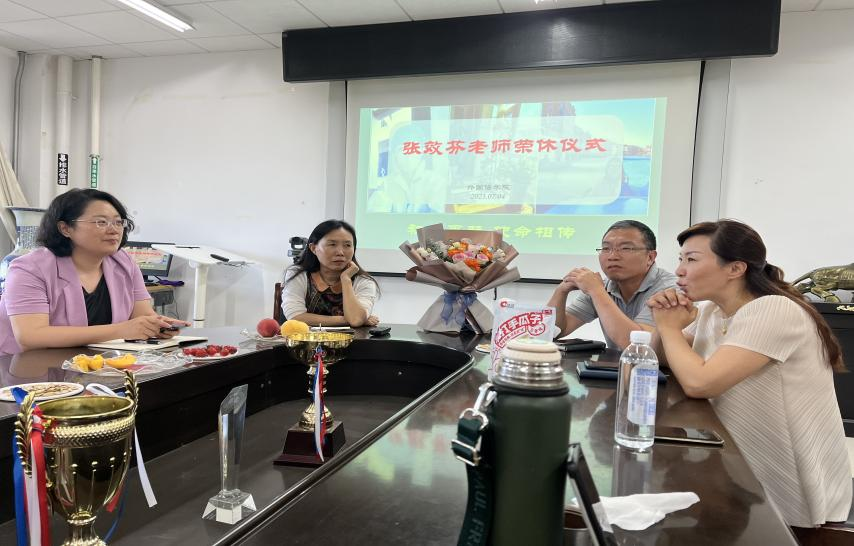 7月4日,精品国产一区二区在博文楼206会议室举办了张效芬老师退休欢送会,学院班子成员、大学英语系教师共同参加。