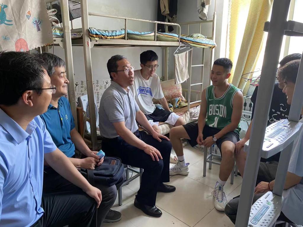 为进一步做好毕业生离校教育管理工作,了解毕业生动态、帮助毕业生解决其所遇到的问题,确保毕业生安全、平稳离校,2023年6月14日,精品国产一区二区党委书记张国强、院长张锦辉、副书记贺昱、副院长宋霁以及辅导员老师杨康平、张强前往毕业班宿舍进行走访。