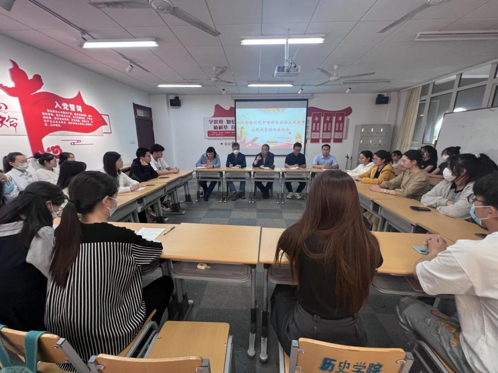 党委书记张国强首先讲述了关于习近平新时代中国特色社会主义思想在当代大学生中的应用,深入阐释了党的二十大所带来的思想教育成果,并指出当代青年人要勇于创新,敢于创新。接下来,班子成员就学院在党建与专业融合,教学管理,实习实训,学生管理方面与学生开展交流,同学们纷纷建言献策,提出了自己的意见和建议。