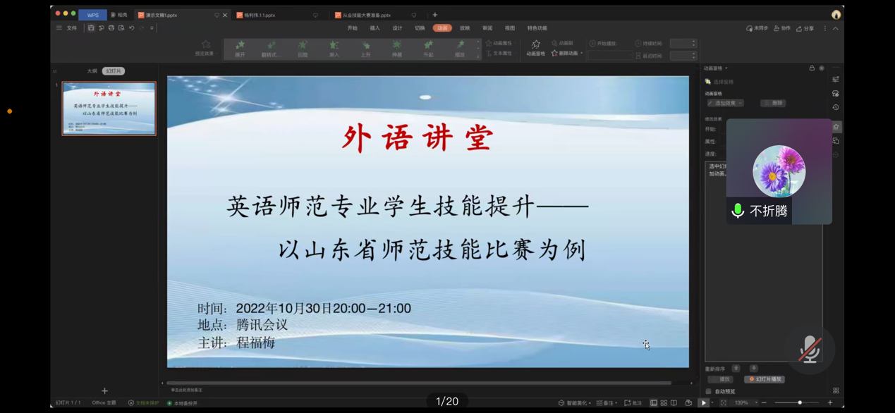 为了扩展学生们对于师范生技能大赛的认识,提高学生们的师范技能能力,疫情期间精品国产一区二区充分利用网络平台,于2022年10月30日晚以线上会议的形式为学生进行技能提升。英语系负责人、师范技能指导团队负责人以及全体英语系学生参加了本次会议。