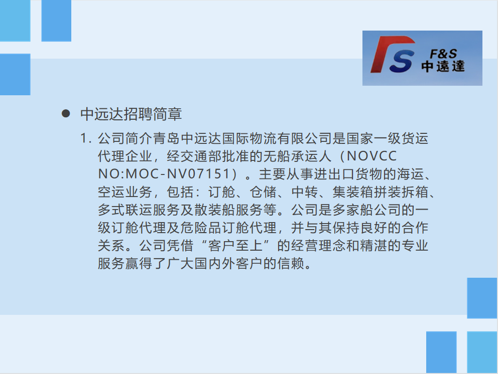 2022年5月14日,青岛中远达国际物流有限公司就业宣讲会于线上进行宣讲活动。