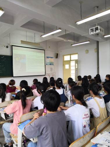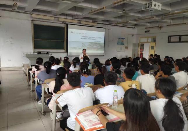 钟云霞老师引用 《荀子•儒效篇》中”不闻不若闻之,闻之不若见之;见之不若知之,知之不若行之;学至于行而止矣。”启发学生大学英语的学习“行”很重要。