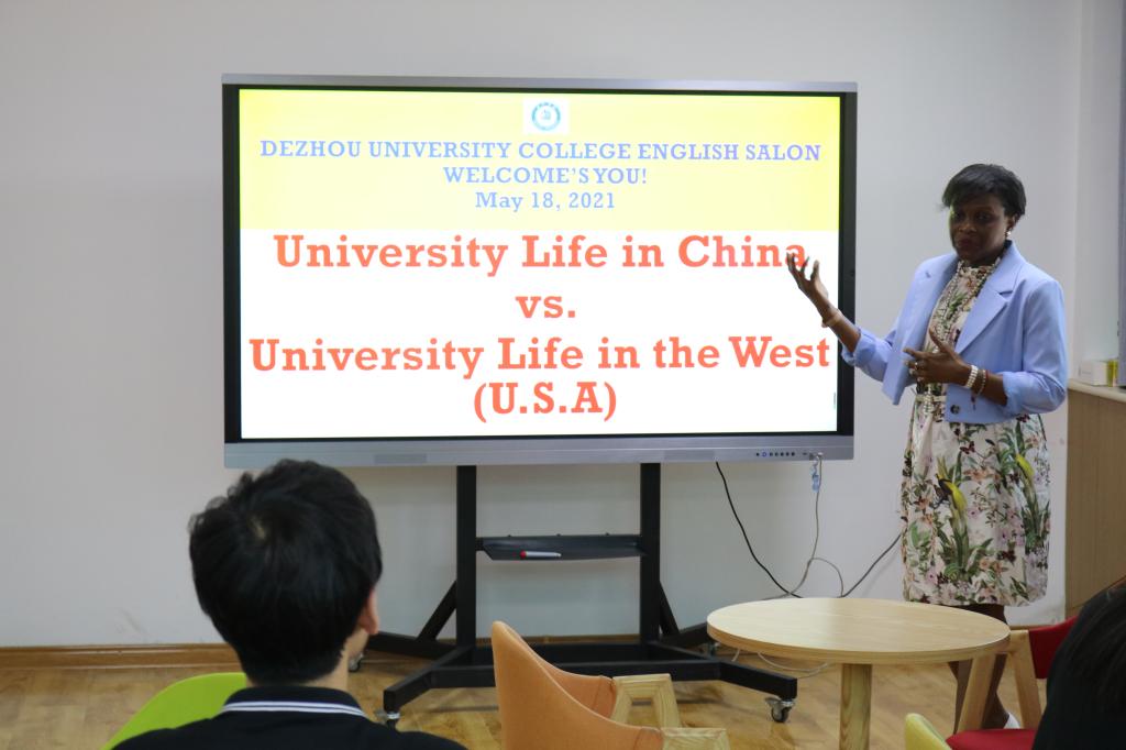 为了提高学院学生的英语应用能力和综合素质,培养个人学习英语的热情,加强学生间的交流与合作,促进各专业之间的借鉴与学习。5月18日,来自牙买加的外籍教师Dahlia在大学生事物发展中心博学谷举办“英语沙龙”活动,本次活动主题为“University Life in China v.s University Life in West”。来自法学院、精品国产一区二区、生态与资源资源学院、纺织服装学院等多个学院的同学积极参与。