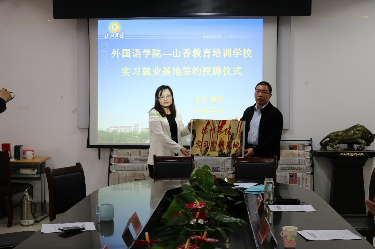 随后,我院与山香教育分别签订了实习基地共建协议和就业基地共建协议,并为山香教育颁授了“德州学院实习实训基地”标志牌及“德州学院就业基地”标志牌。