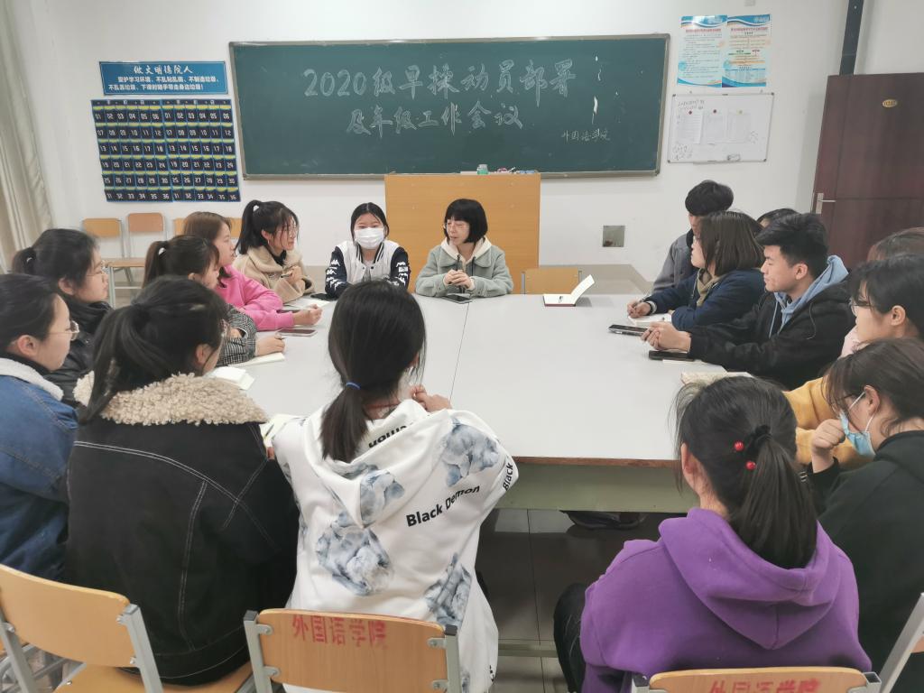 2020年3月5日,精品国产一区二区在博文楼237教室举行了2020级学生早操动员部署工作会议。精品国产一区二区党总支副书记李想同志参加会议并做动员讲话,相关辅导员及2020级全体班长团支书、体育委员参加大会。