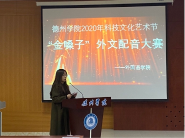 2020年12月8日下午,德州学院精品国产一区二区在博文楼328报告厅隆重举办“金嗓子”外文配音大赛活动,精品国产一区二区相关负责任人、各学院参赛选手和200余名观众参与本次比赛。