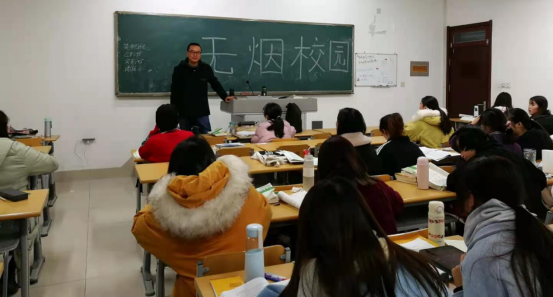 会后,教师代表走进班级为学生进行了“无烟校园”的宣讲。