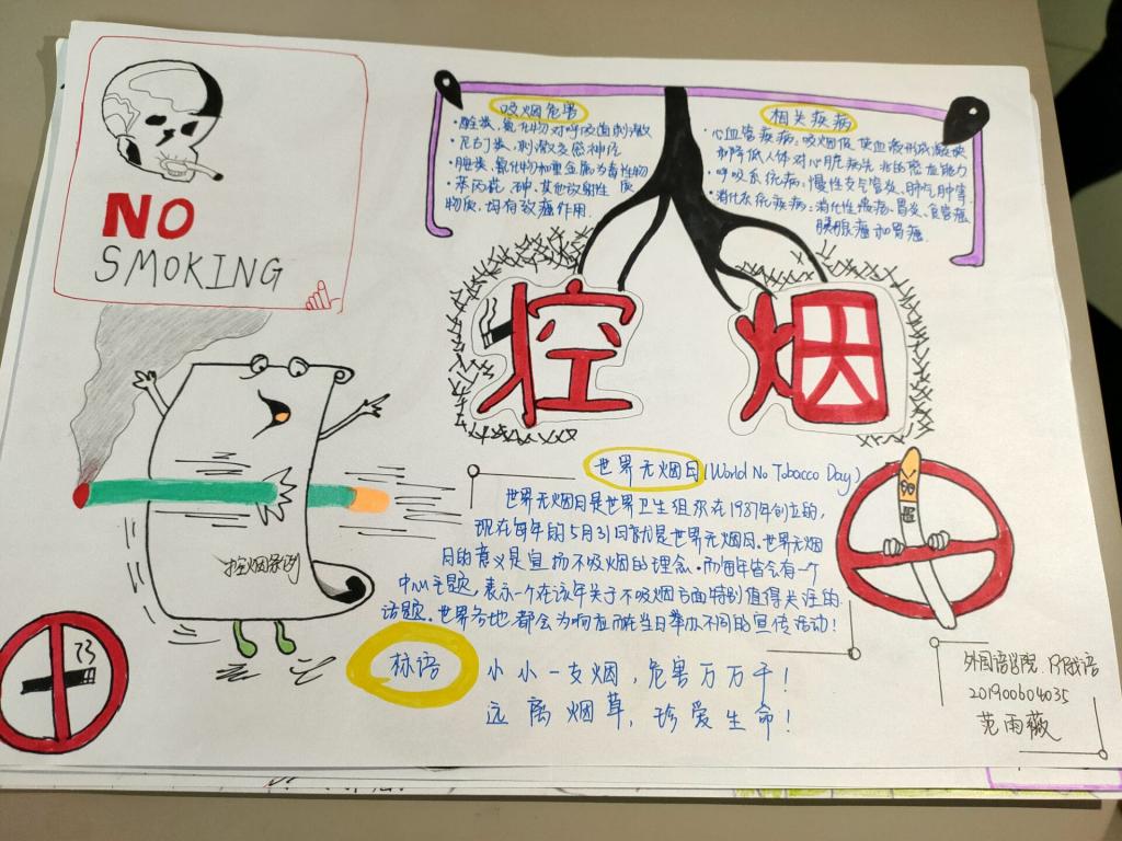 为提升我院学生的禁烟意识,我院举行了“拒吸第一支烟,做不吸烟新一代”手抄报比赛。本次活动旨在让学生意识到吸烟的危害,进而能够做到远离香烟,营造出清新,健康的校园环境。
