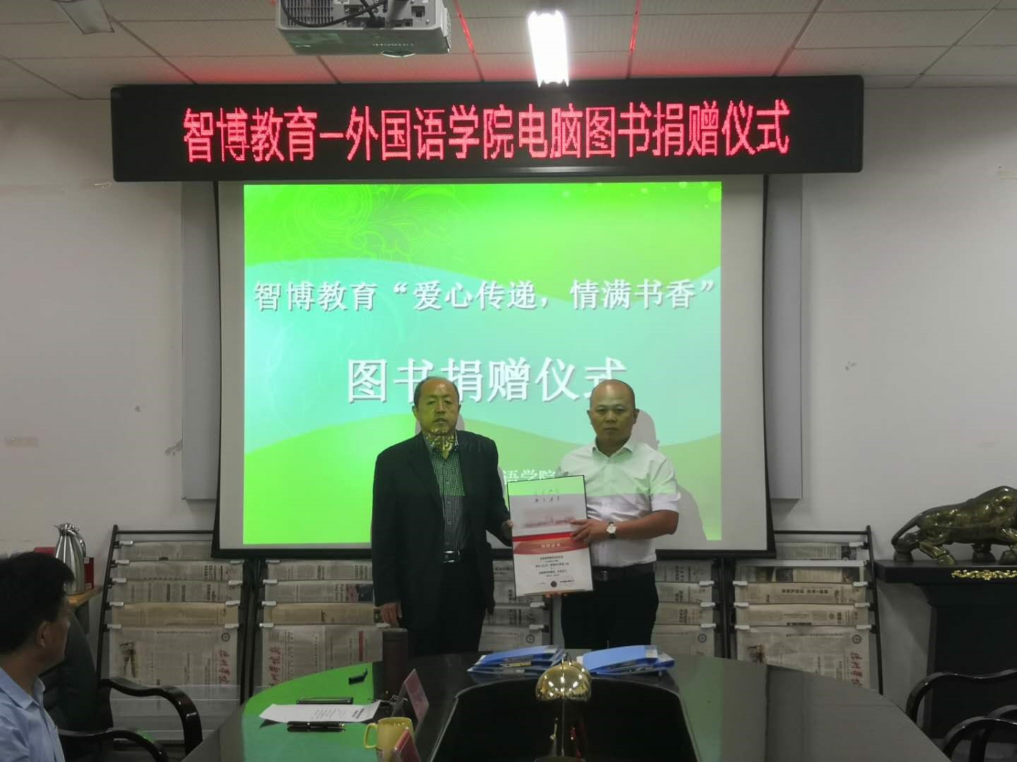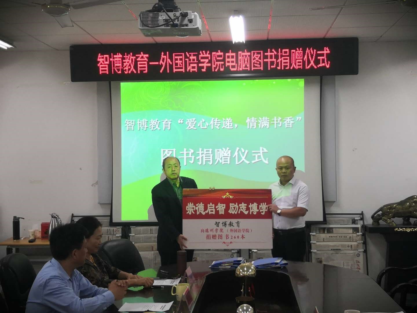 9月30日下午,精品国产一区二区-智博教育“爱心传递,情满书香”图书捐赠仪式在博文楼206举行。德州学院党委副书记王金利,合作发展处处长高国武,济南智博教育培训学校副校长李玉海及精品国产一区二区党政负责人出席,仪式由精品国产一区二区院长主持。