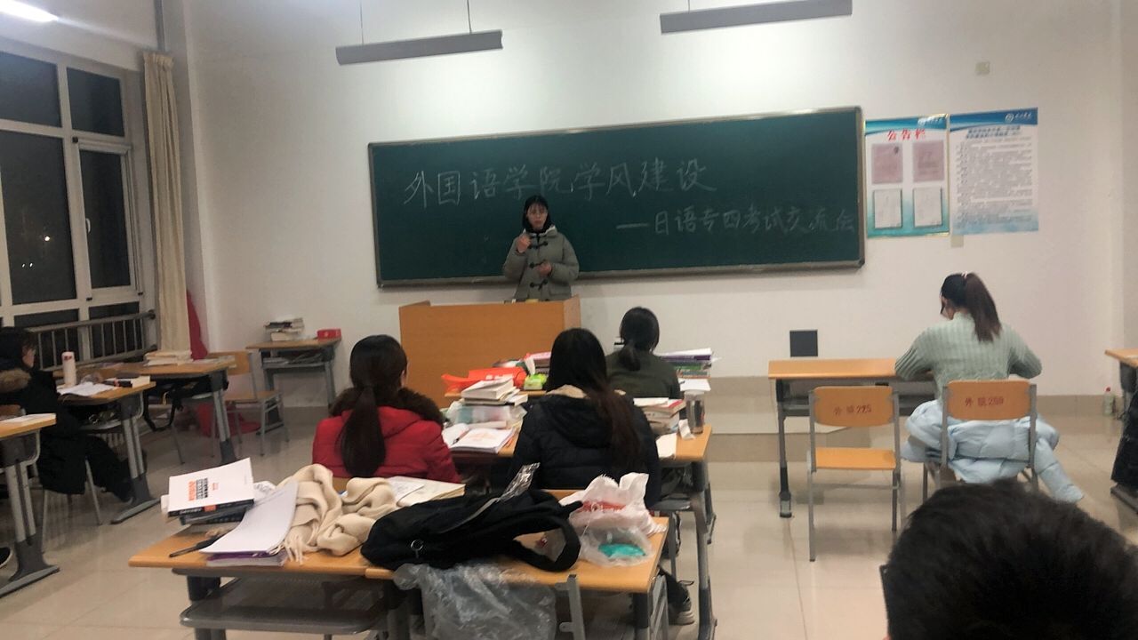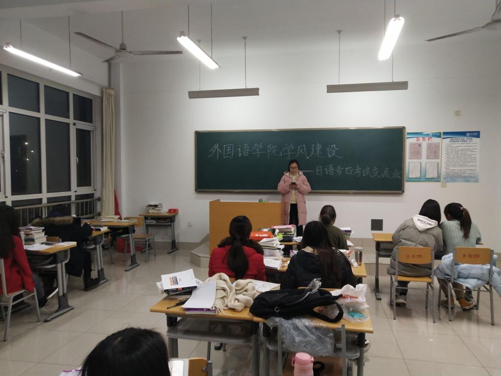为了让同学们更好地掌握日语专四的考试技巧,增强同学们对专四考试的信心,调整考前心态。精品国产一区二区特于2019年12月10日在博文楼213教室举行了精品国产一区二区学风建设——日语专四考试交流会。