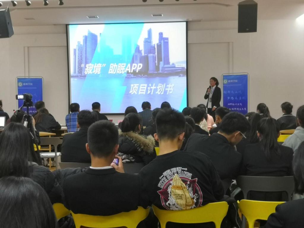 决赛现场气氛十分活跃,参赛人员均积极进行自我介绍和项目展示。我院同学充分准备,在比赛中奋力拼搏,机智回答老师提出的问题,希望能够赛出水平,赛出实力。最终,在20个项目的激烈角逐后,我院“私人树洞APP”项目荣获三等奖,“寂境助眠APP”项目荣获优秀奖。