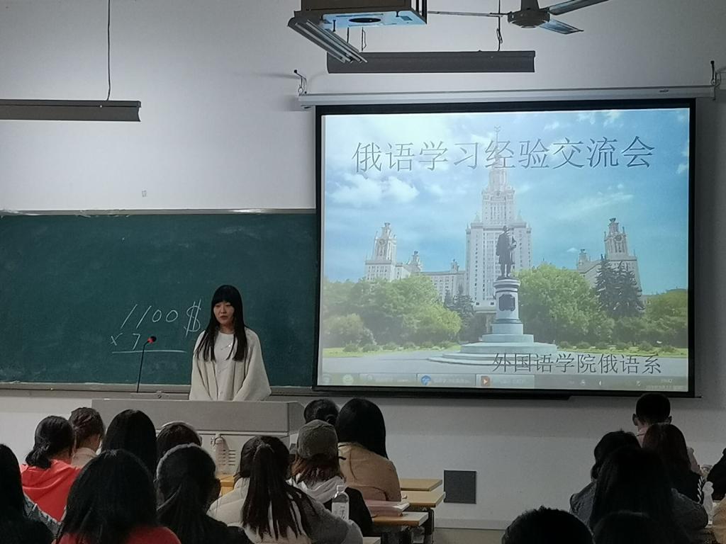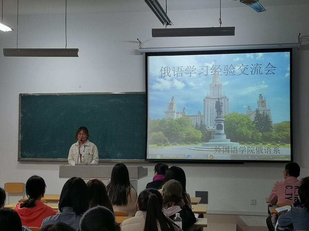 为提高精品国产一区二区俄语专业新生学习兴趣,促进专业学习效率。2019年10月13日晚19:30—21:00在博文楼225教室俄语系举行了本学期第一场俄语学习经验交流会。 本次活动由19级学委周大祺同学主持,参加人员有俄语系教师、18、19级全体及16、17级部分学生。