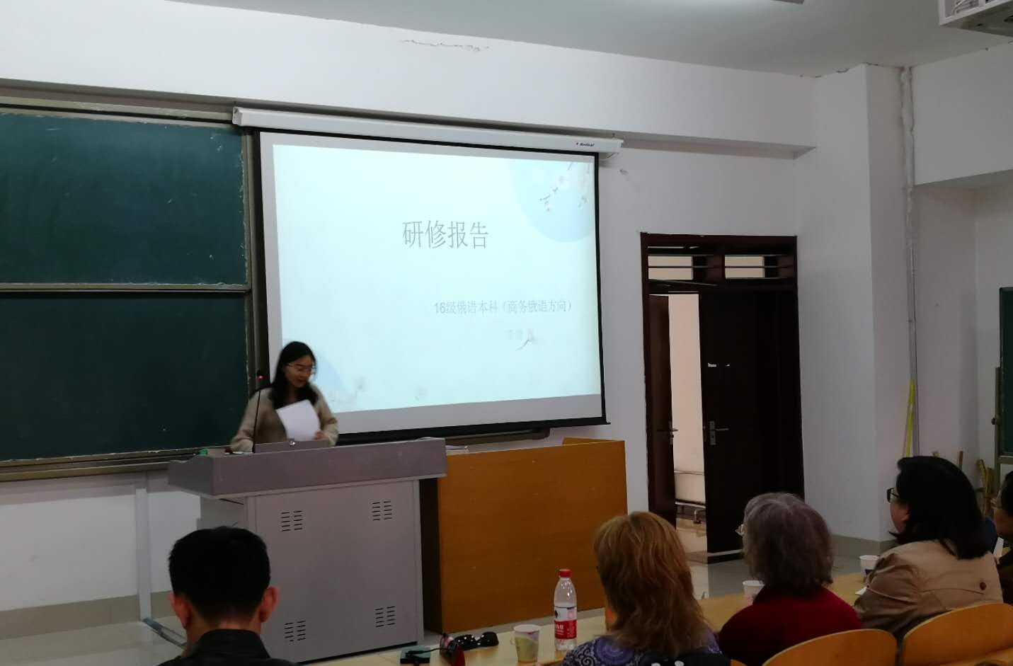 本次会议分为三个主题,第一部分由精品国产一区二区获得国家留学基金委资助的优本项目学生汇报在外留学情况,并且分享了申请优本项目的流程及条件、留学院校介绍、国内外考试的差别及学生的课内外生活。第二部分两位俄罗斯外教伊莉娜和玛丽娜分别介绍了莫斯科高校、别尔哥罗德国立大学概况和留学生学习情况,并为外语专业学生提供学习建议,他们十分欢迎我校外语专业学生赴俄留学并愿意提供帮助。第三部分由欧美同学会副会长王新芳教授和精品国产一区二区邵峰副教授分享了各自在德国和日本的学习、生活、科研经验,他们鼓励在校生学好外语,走出国门,与母语国家的人密切交流,提高自身外语水平。