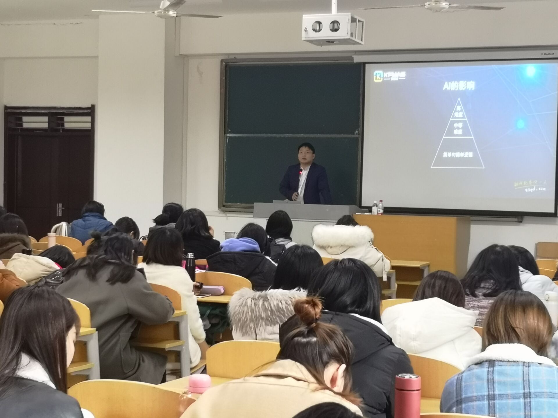 本次主题讲座由 北京译点科技有限公司总经理江心波主讲。讲座上,江总经理从当代翻译现状、当代翻译人才面对的困难与挑战以及翻译人才需要做出的改变等方面进行了精彩讲授。他表示,我们首先要将语言战略提升到国家战略层面,更要正视AI人工智能技术的发展以及翻译技术的变革所带来翻译现状的变化。最后江总经理强调,随着科技和社会的进步,翻译人才也应与时俱进、追求卓越,不断增强实践能力。