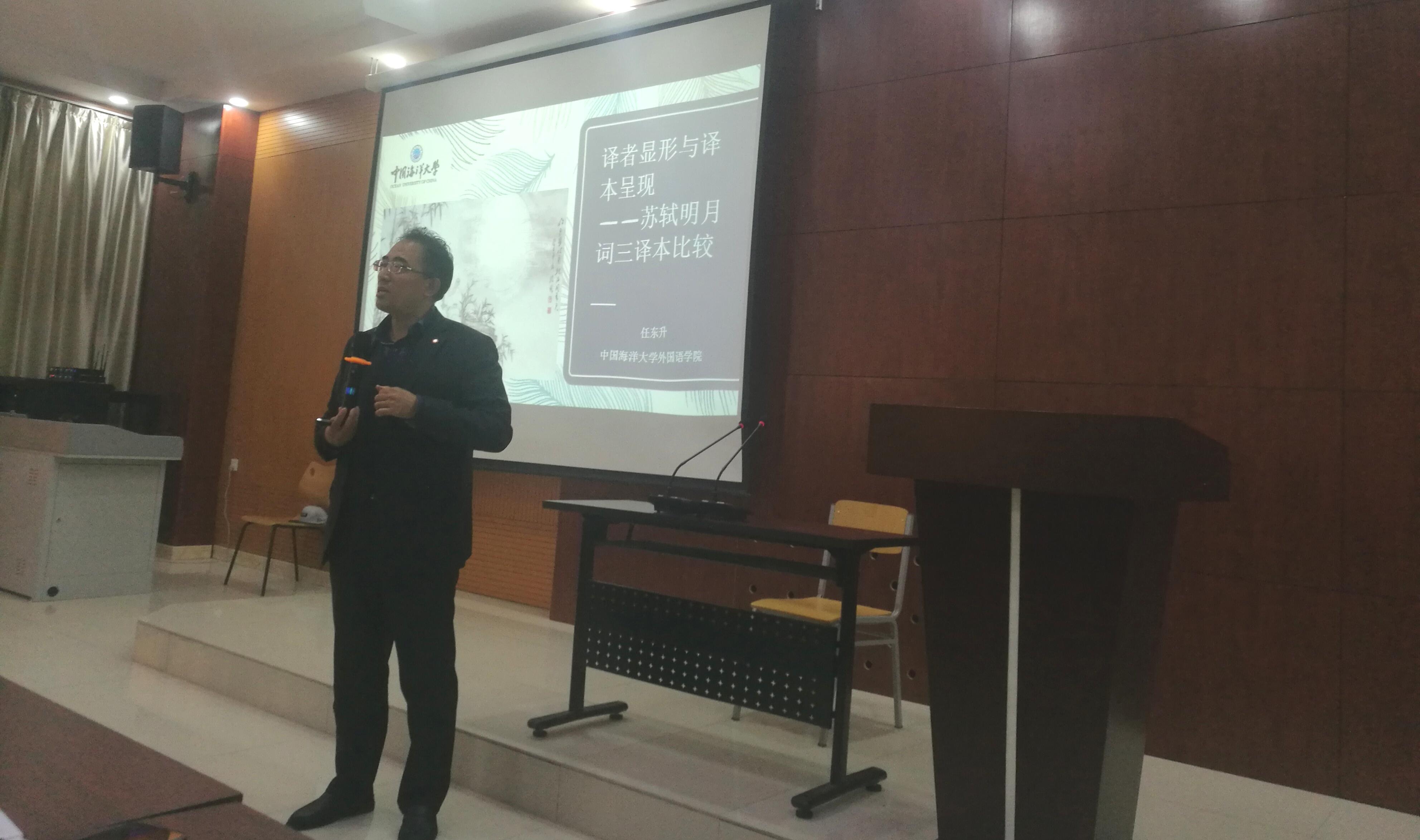 10月11日下午,中国海洋大学精品国产一区二区博士生导师任东升教授邀来我院做《译者显形与译本呈现》学术报告。
