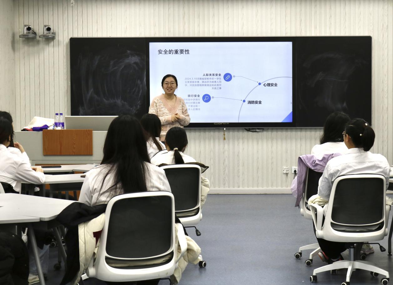 朱馨馨围绕近期发生在大学生群体的人身安全、网络安全、交通事故、心理防范等典型案例,强调了大学生群体提升法律意识与自我保护能力、增强心理韧性与应对能力、培养健康生活方式与情绪管理的重要性,提醒学生骨干在日常学习、生活及活动中要增强责任意识,以身作则,带头遵守各项安全规章制度,及时排查和消除安全隐患,共同营造安全和谐的校园环境。