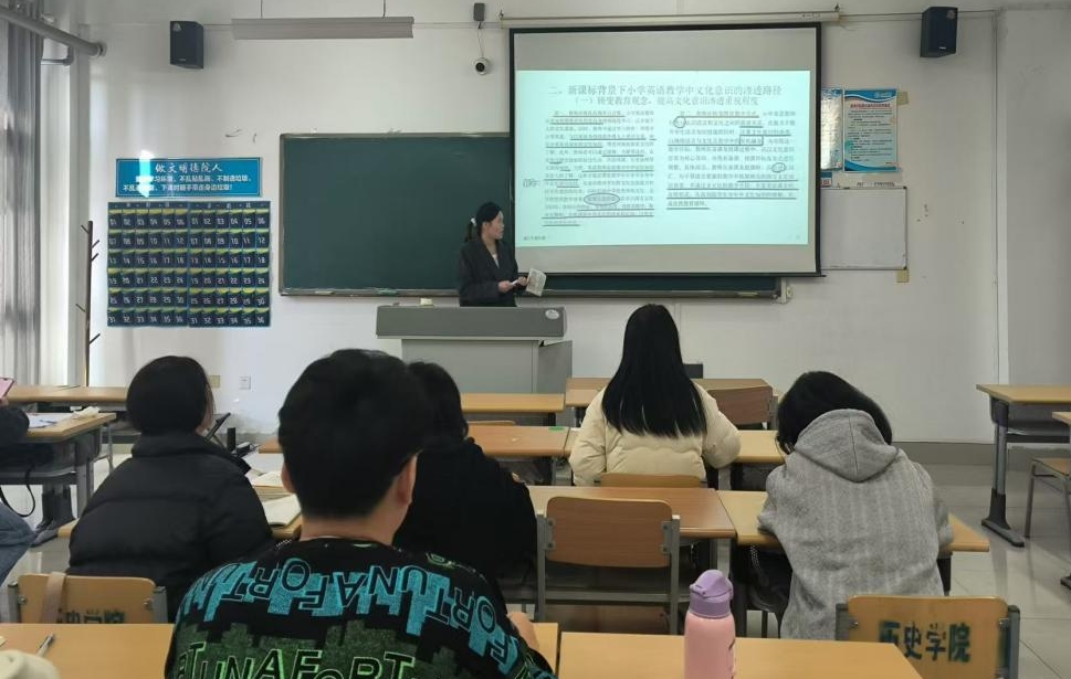 为提升英语师范生的教学能力,强化学生专业素养,11月18日-12月01日期间,精品国产一区二区组织2024级英语师范专业学生开展了为期两周的教育见习。此次见习分为两个阶段,第一阶段学生在校内深入学习义务教育阶段英语课程标准重要概念并进行成果展示,第二阶段学生进校实地见习,期间学院邀请崇德中学副校长徐长亮做了关于优秀教师成长的讲座。