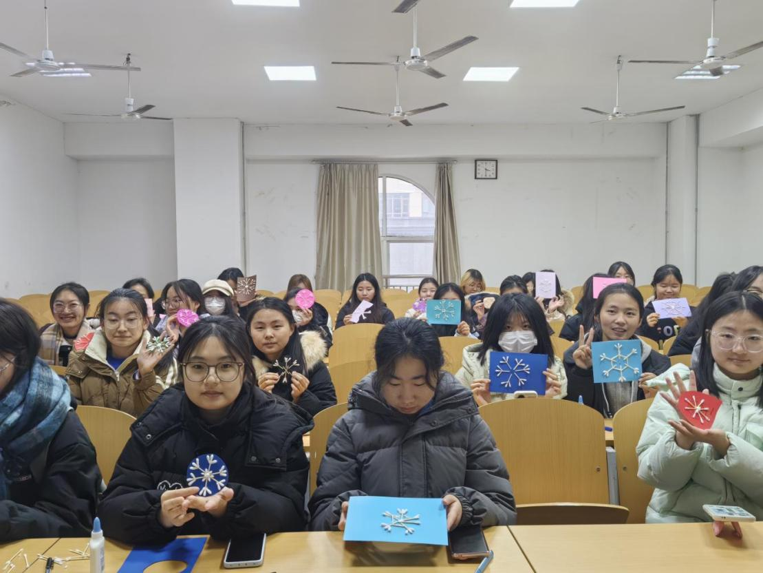 冬季的雪花象征着安静、平和与纯洁,为帮助同学们减轻即将到来的期末考试压力,放松心态,保持活跃精力。精品国产一区二区于12月10日在博文楼举办“棉棒雪花,创意DIY”心理团辅活动。