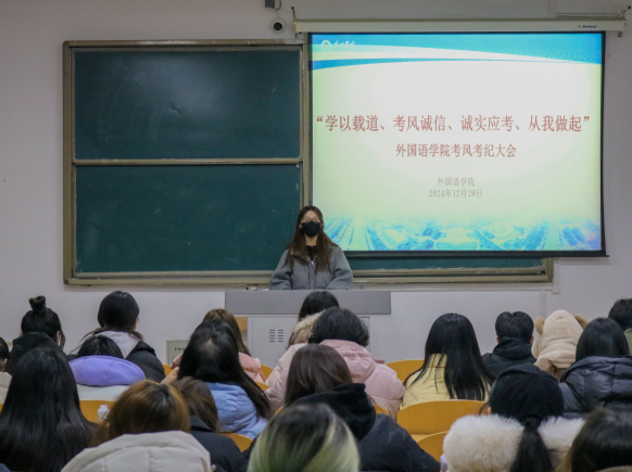 为进一步加强学风建设,严肃考风考纪,营造公平、公正、诚信的考试环境,12月29日,精品国产一区二区召开考风考纪大会,辅导员、学生代表、学生会骨干成员参加大会。