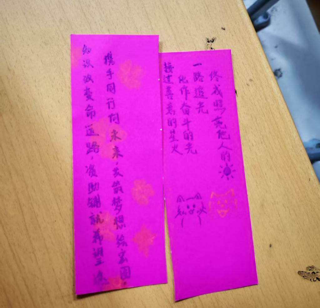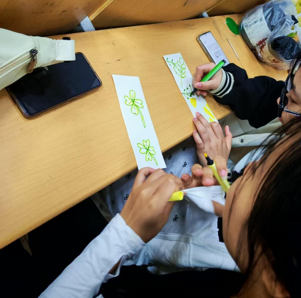 活动现场,同学们围绕“感恩奋进”“筑梦未来”等主题,通过手绘、拼贴、篆刻等形式,在书签中融入励志格言、经典名句、自然风景等多种元素,将励志与梦想赋予到书签之上。每一件作品都体现着同学们的创意与温度。在书签作品展示交流环节,同学们纷纷展示自己的作品,互相交流创作感受,并分享自己的未来梦想和规划。所制作的部分书签后续将赠予师生,持续传递这份温暖。