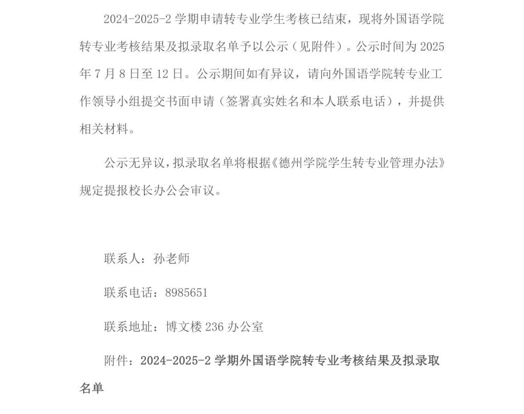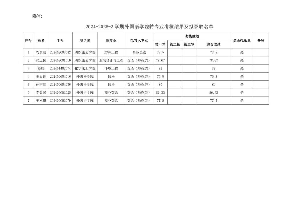 2024-2025-2学期 精品国产一区二区转专业考核结果及拟录取名单公示
