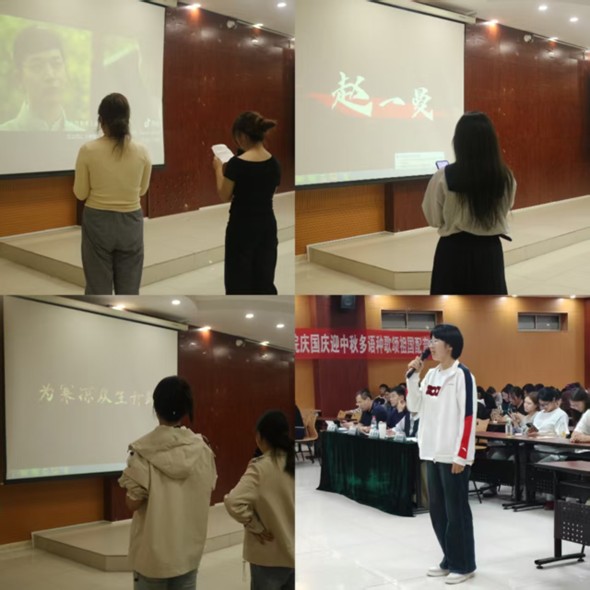 为庆祝中华人民共和国成立76周年、迎接中秋佳节,进一步推进校园文化建设,激发学生爱国热情与语言学习兴趣。9月28日,由学生工作处主办、精品国产一区二区承办的“声动中国 语你共鸣”庆国庆迎中秋多语种歌颂祖国配音比赛在博文楼328举行。