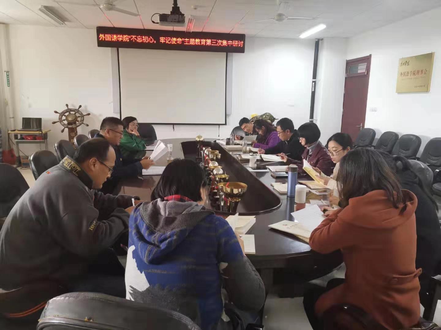 10月22日上午,精品国产一区二区理论学习中心组(扩大)按照“不忘初心、牢记使命”主题教育学习教育计划,围绕“党性修养”和“担当作为”两个专题,在博文楼212开展“不忘初心、牢记使命”第三次集中学习研讨。精品国产一区二区班子成员、办公室主任、支部书记、辅导员参加学习研讨,学校主题教育领导小组第五指导组派人到会指导。