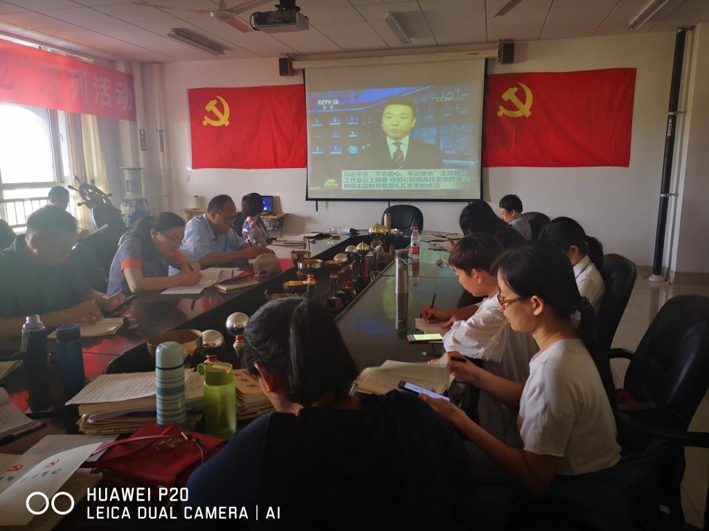 会上收看了中央电视台《习近平在“不忘初心、牢记使命”主题教育工作会议上强调 守初心担使命找差距抓落实 确保主题教育取得扎扎实实的成效》新闻节目,集中学习了中央“不忘初心、牢记使命”主题教育工作会议精神、山东省“不忘初心、牢记使命”主题教育工作会议精神以及人民日报社论《为新时代党的历史使命而努力奋斗》。