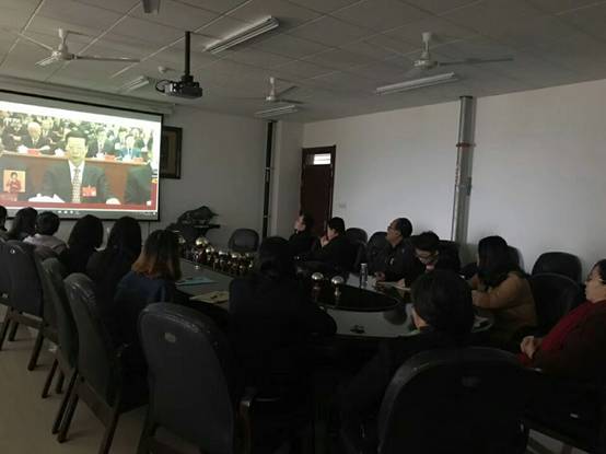 2017年10月18日上午,精品国产一区二区组织全体党员师生在博文楼会议室共同观看“党的十九大开幕会”直播,老师们认真倾听习近平总书记代表十八届中央委员会对大会作报告。