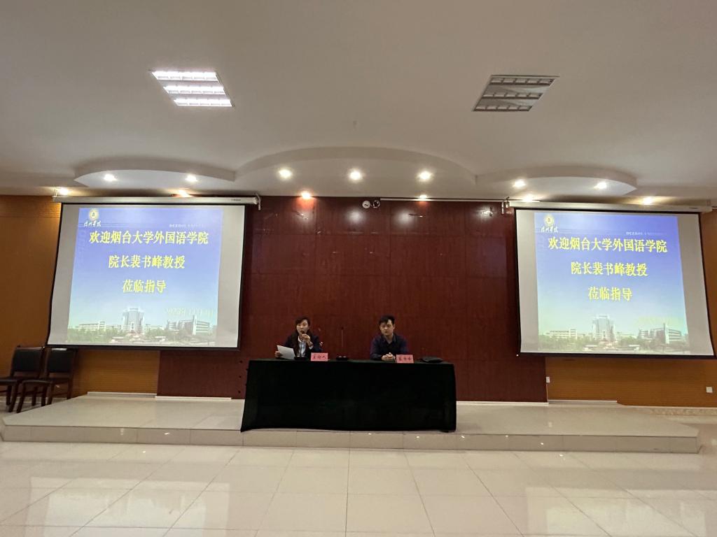11月3日,精品国产一区二区邀请烟台大学精品国产一区二区副院长裴书峰副教授在博文楼328报告厅开展了题为“语言服务及创新创业”的专题讲座。此次讲座由精品国产一区二区分管负责人主持,精品国产一区二区学生代表参加了此次讲座。