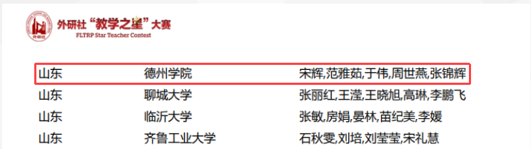 6月19日,2023年外研社“教学之星”大赛全国复赛成绩揭晓,精品国产一区二区选派的由宋辉、范雅茹、于伟、周世燕、张锦辉组成的大学英语组参赛团队和由龙娜娜、胡晓莉、史青玲、程福梅、孙艳华组成的英语专业组参赛团队,凭借流畅的教学流程、科学的教学设计、扎实的教学功底和出色的课堂展示,分别荣获大学英语组和英语专业组一等奖。