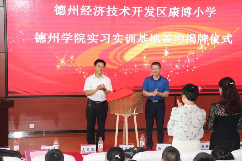 6月27日上午,我校在德州经济技术开发区分别与东城中学、东城小学、康博小学举行德州学院实习实训就业基地签约揭牌仪式。