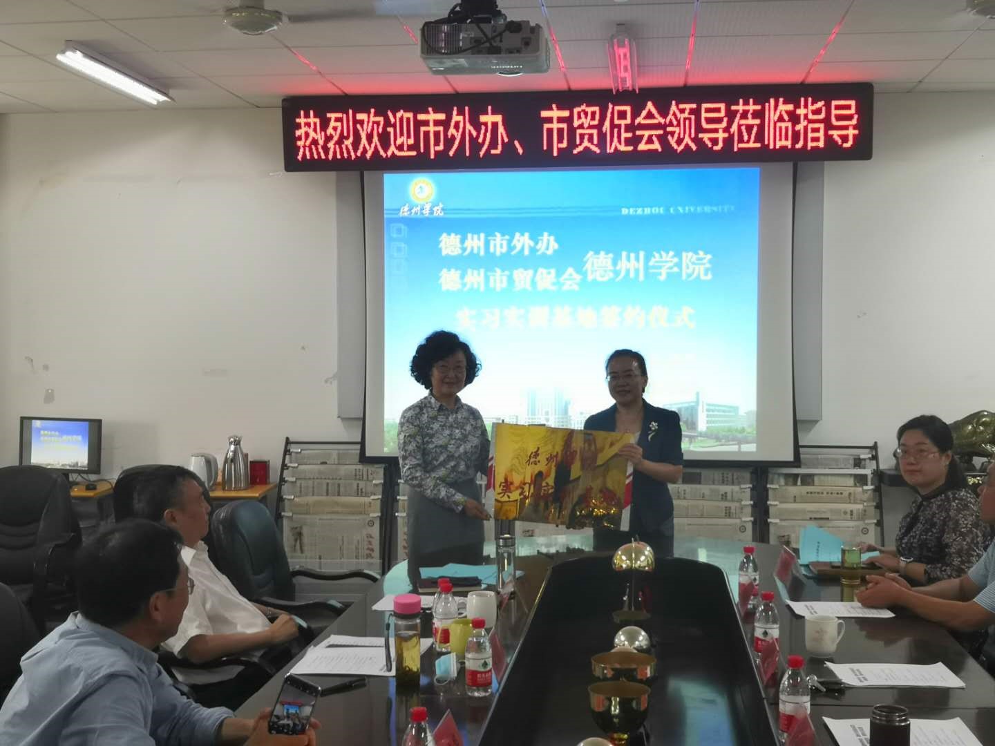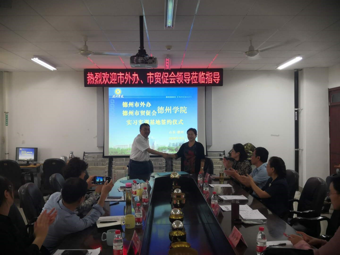 9月23日上午,德州学院与德州市外办、德州市贸促会实习实训基地签约暨揭牌仪式在博文楼206会议室举行。